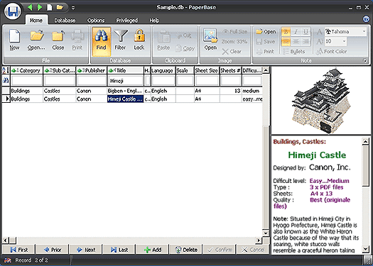 PaperBase is a simple and portable application with built-in SQLite engine that permit to collect and manage data for small and large papermodels collections.