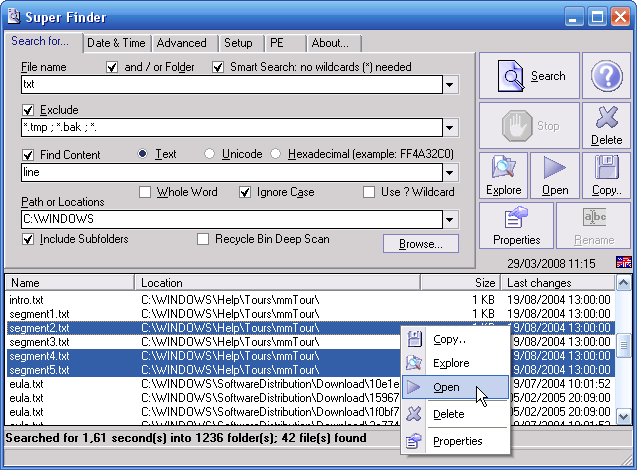 - Delete multiple files or folder (suitable i.e. for disk cleaning, by searching and removing temporary files).