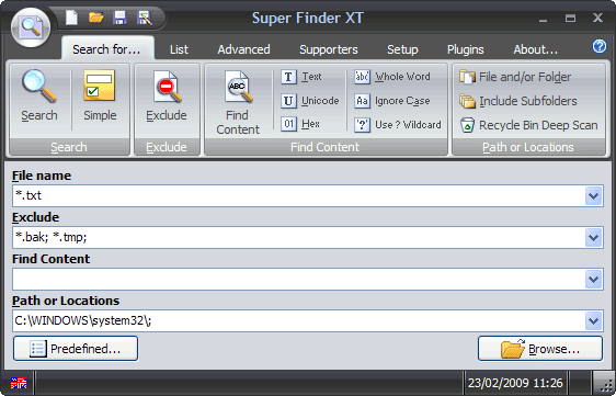 "Smart Search mode": allow to search for similar names without type the asterisk (*) character at the begin or end of partial file name or extension to search.